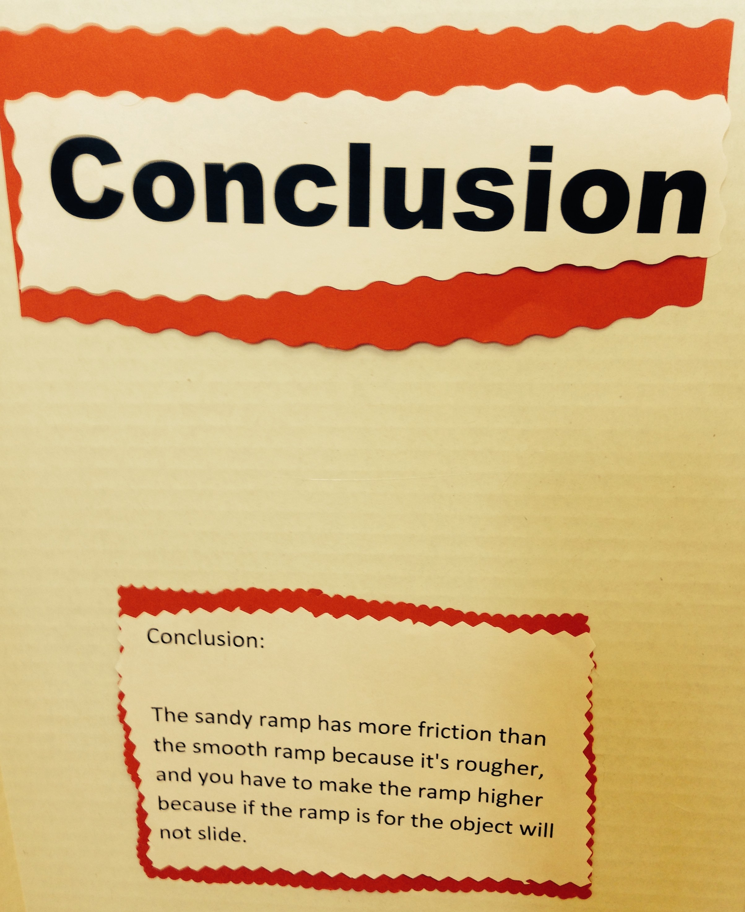 Conclusion ← Previous Next → The sandy ramp has more friction than the smooth ramp because it’s rougher, and you have to make the ramp higher. Like this:Like Loading... Share this: Email a link to a friend (Opens in new window) Email Share on X (Opens in new window) X Share on Facebook (Opens in new window) Facebook Share on Pinterest (Opens in new window) Pinterest More Share on Tumblr (Opens in new window) Tumblr Share on Reddit (Opens in new window) Reddit Print (Opens in new window) Print Like this:Like Loading...