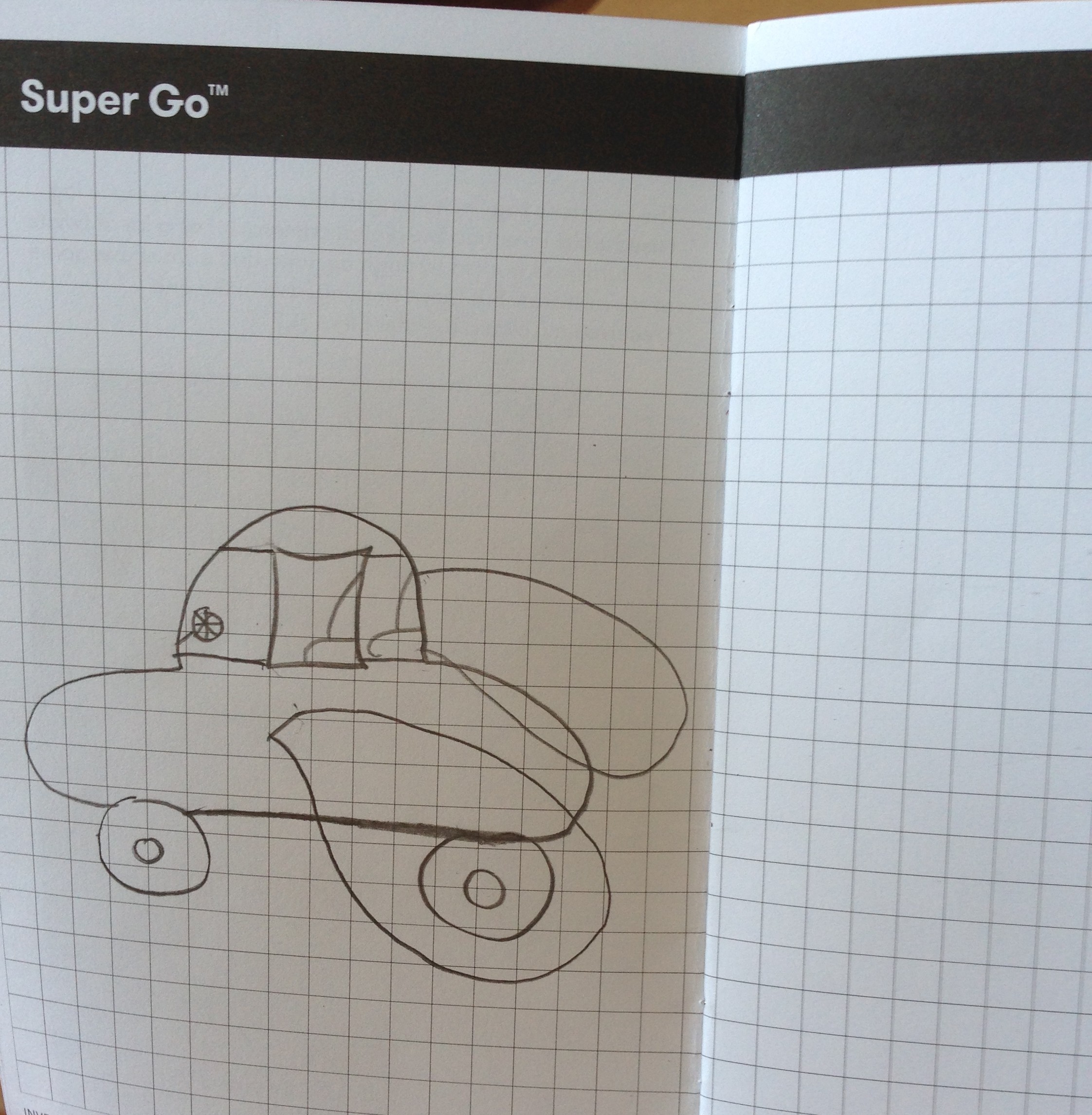 This journal drawing represents the direction one inventor plans to take to allow her vehicle to “swim” out of water onto land . . . like an amphibian!