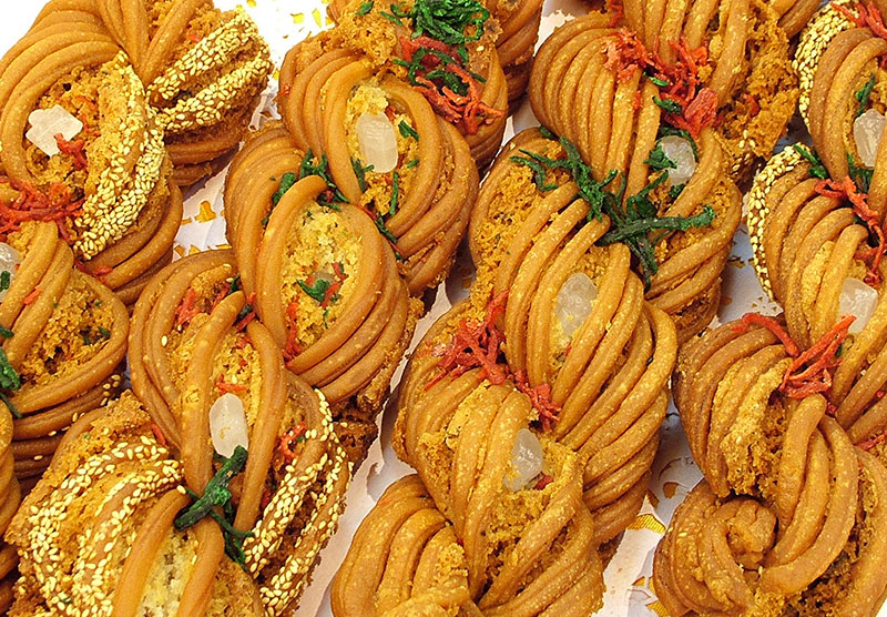 Da mahua is a fried dough twist made with ingredients such as flour, sesame, walnut, peanuts, osmanthus, and other variations. Rock sugar provides sweetness.